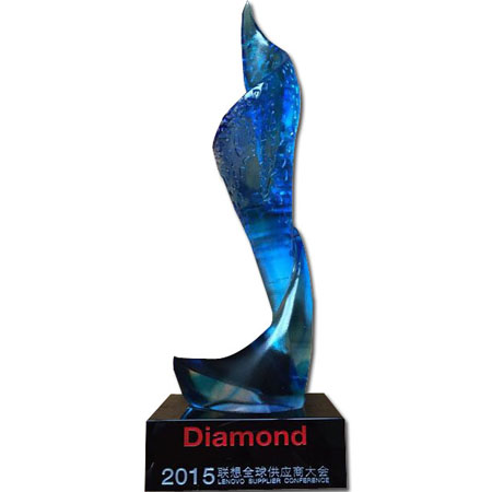 圖為我司董事長高玉根及總裁曹海峰于2015.5.28在北京參加的2015聯(lián)想全球供應(yīng)商大會(huì)由董事長高玉根上臺(tái)領(lǐng)取的鉆石獎(jiǎng)。