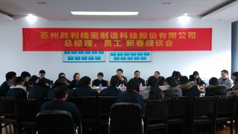 一月二十八日下午,公司工會舉辦了新春座談會,總經(jīng)理章海龍先生和參加座談的員工,進行了兩個小時的溝通交流,聽取了員工對工作、學習、生活和員工個人發(fā)展目標等方面的想法和建議,對此,章總作了耐心細致的回答,現(xiàn)場氣氛熱烈,發(fā)言踴躍。通過此類活動,加深了員工和公司管理層的溝通,融洽了勞資關(guān)系,營造了和諧氣氛,有利于公司各項工作的順利開展。 公司行政人事總監(jiān),工會負責人參加了座談會.