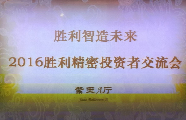 2016年5月19日勝利精密舉辦了投資者交流會(huì),公司高管與投資者面對(duì)面,就勝利精密發(fā)展思路、規(guī)劃、戰(zhàn)略目標(biāo)、現(xiàn)階段成果與未來(lái)努力方向,進(jìn)行交流。力爭(zhēng)在多維度布局發(fā)展中為股東創(chuàng)造新價(jià)值。
