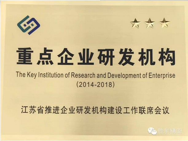 勝利精密榮獲江蘇省推進(jìn)企業(yè)研發(fā)機(jī)構(gòu)建設(shè)工作聯(lián)席會(huì)授予的“重點(diǎn)企業(yè)研發(fā)機(jī)構(gòu)”稱號(hào)
