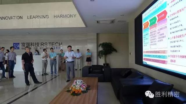 章總接著介紹了勝利精密國家工信部批準立項2016智能制造專項項目,通過應用自主品牌(RS-Tech)的高端CNC、國產(chǎn)先進數(shù)控系統(tǒng)、國產(chǎn)的工業(yè)機器人、國產(chǎn)的自動化生產(chǎn)線及國產(chǎn)的制造執(zhí)行系統(tǒng)等集成協(xié)同,實現(xiàn)生產(chǎn)車間的數(shù)字化、智能化。領導一行對勝利精密在全球化供應鏈中提供了優(yōu)異的技術服務與創(chuàng)新研發(fā)能力給予肯定與贊揚。