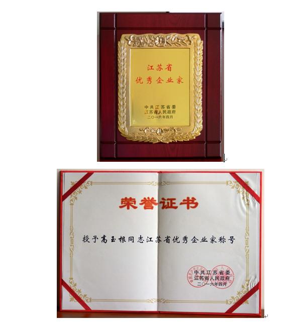 公司董事長高玉根先生被江蘇省委省政府授予“江蘇省優(yōu)秀企業(yè)家”稱號!