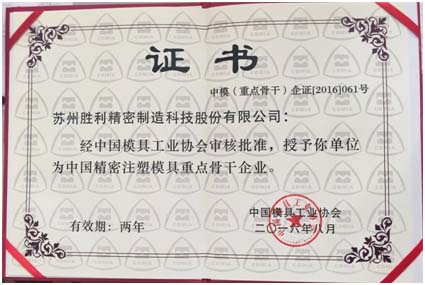 在近日召開的中國模具工業(yè)協(xié)會第八次代表大會上,勝利精密再次被中國模具工業(yè)協(xié)會評為“中國精密注塑模具骨干企業(yè)”。這是對勝利精密在精密注塑模具領域不斷探索,努力專研的肯定,也是勝利精密模具產(chǎn)業(yè)新的起點,我們將繼續(xù)在這個行業(yè)中深耕細作,開拓創(chuàng)新!