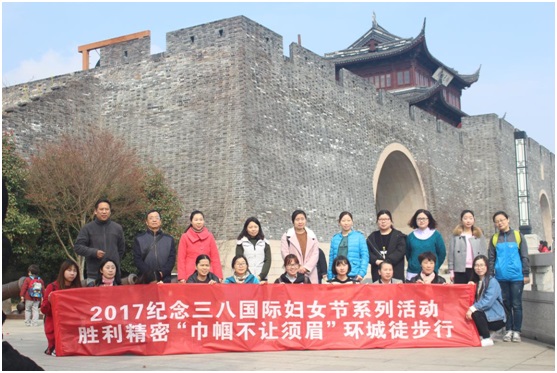 為慶祝國際婦女節(jié),3月11日,勝利精密工會組織的“巾幗不讓須眉”環(huán)城徒步行活動,在環(huán)城步道相門城樓處舉行。勝利精密的工會委員,各工作片女職工代表,在工會主席殳啟群的帶領(lǐng)下,從相門出發(fā),途徑婁門、齊門、平門,向目的地閶門古城墻前進(jìn)。