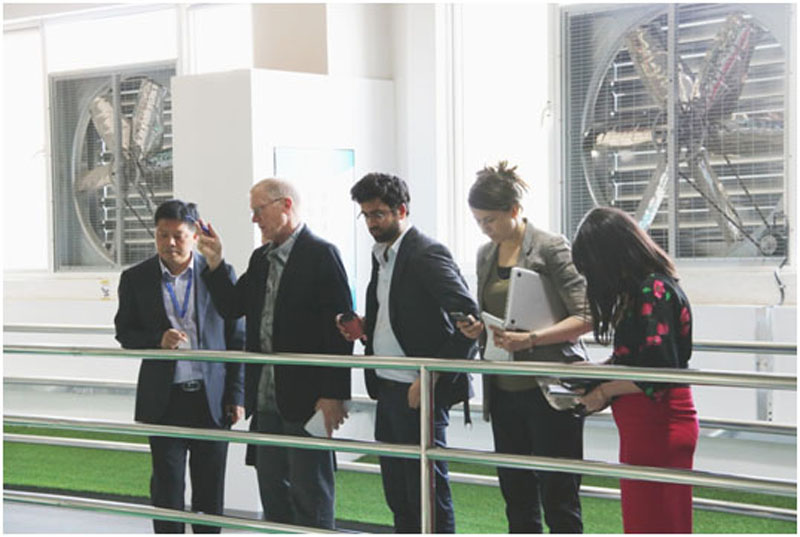 勝利精密章海龍副總裁陪同美國媒體代表團參觀了在建中的國家智能制造工廠,并向代表團詳細介紹了智能制造工廠建設情況。