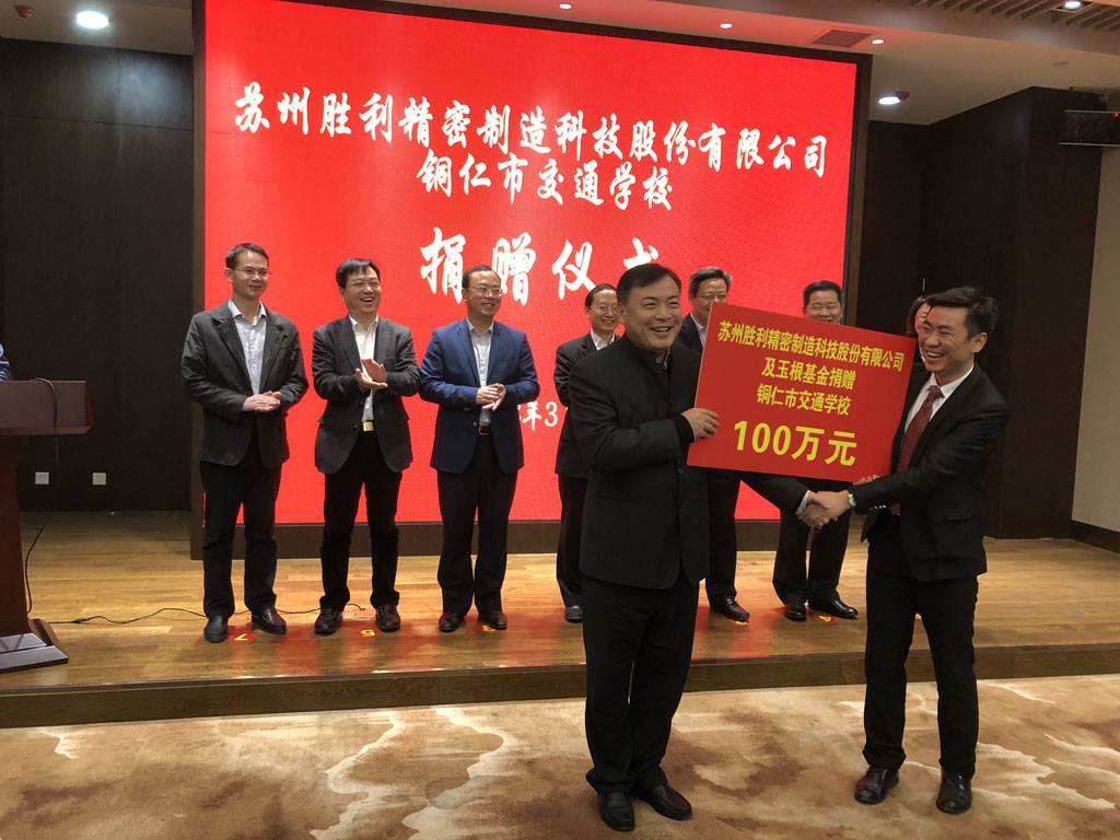 會(huì)上,勝利精密與銅仁市交通學(xué)校結(jié)成幫扶對(duì)子,公司及董事長(zhǎng)本人以玉根基金名義向其捐贈(zèng)共計(jì)100萬元,支持學(xué)校通過職業(yè)技術(shù)教育平臺(tái),幫助更多的家庭和學(xué)生,掌握和提升職業(yè)技能,為當(dāng)?shù)丶夹g(shù)脫貧工作貢獻(xiàn)力量。