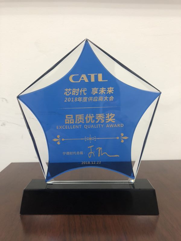 2018年12月22日,寧德時代新能源科技股份有限公司年度供應商大會,在寧德隆重舉行,此次供應商大會僅頒發(fā)兩個品質優(yōu)秀獎,勝利精密子公司蘇州捷力新能源材料有限公司獲此殊榮,且是隔膜供貨商中的唯一獲獎者。