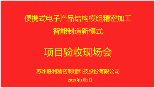 2019年1月5日,江蘇省工信廳組織在勝利精密召開(kāi)了《便攜式電子產(chǎn)品結(jié)構(gòu)模組精密加工智能制造新模式》專(zhuān)項(xiàng)項(xiàng)目驗(yàn)收現(xiàn)場(chǎng)會(huì)。